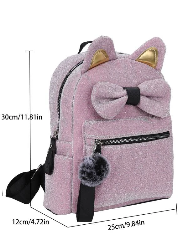 กระเป๋า ทรงแปลกใหม่ กลิตเตอร์ การ์ตูน หู & ตกแต่ง โบว์ พร้อม จี้ ปอมปอม ll