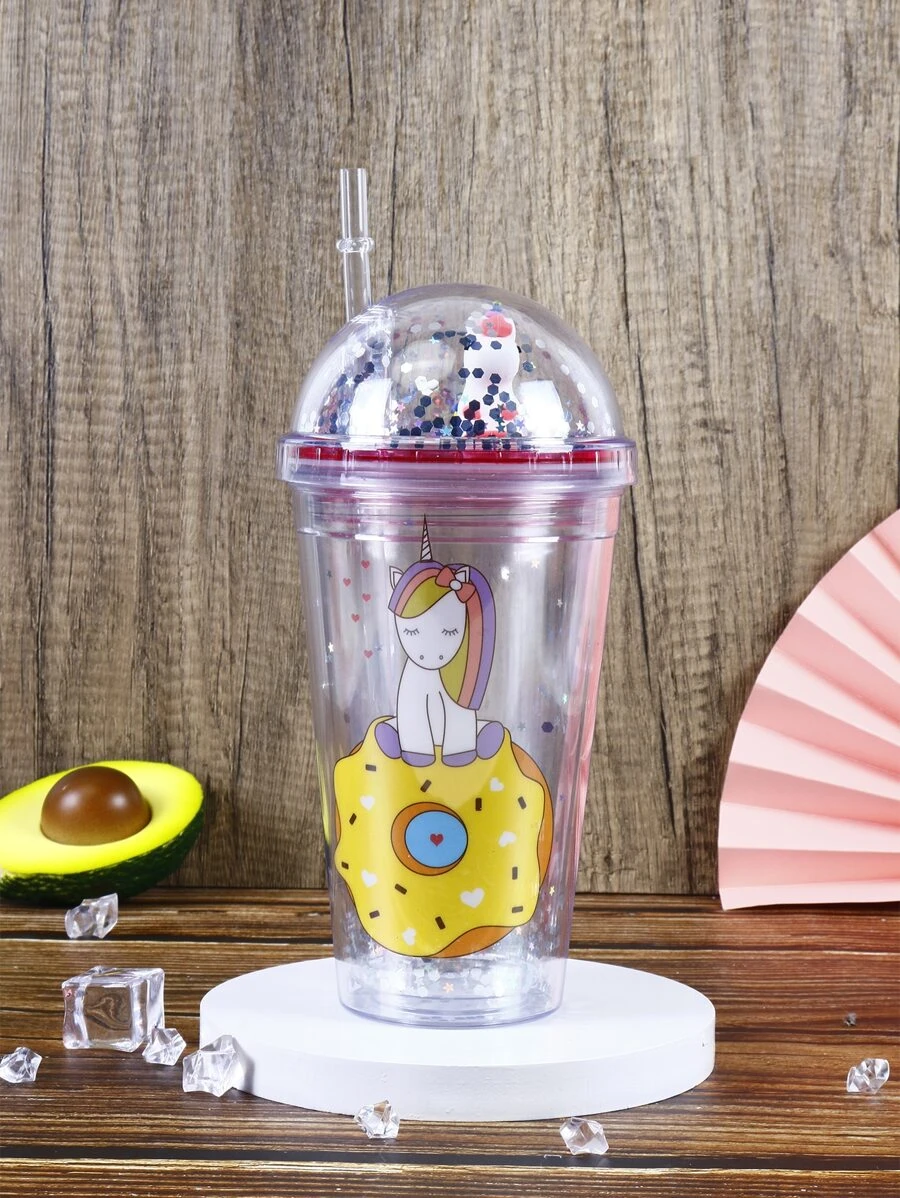 ถ้วยดื่ม การ์ตูน ยูนิคอร์น & โดนัท ลวดลาย พร้อม ของขวัญ ถึง 1 ชิ้น pp-76