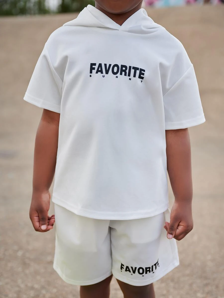 เด็กผู้ชาย เสื้อยืด พิมพ์ ตัวอักษร ฮูด ปลอกคอ & กางเกงขาสั้น กระเป๋าแนวทแยง b-76