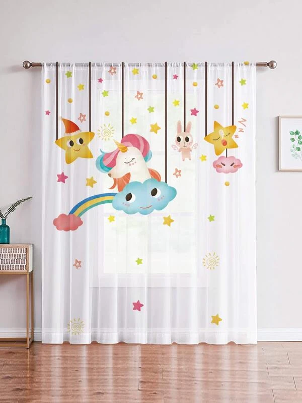 ผ้าม่าน ผ้าโปร่ง การ์ตูน ดาว & ลาย ยูนิคอร์น ผ146