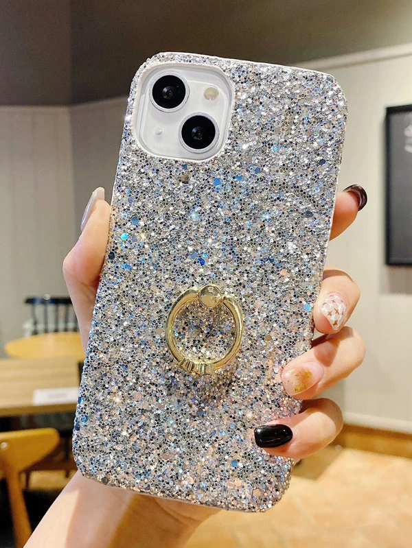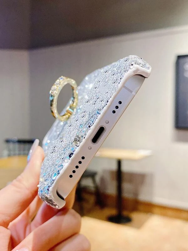 เคส โทรศัพท์ กลิตเตอร์ พร้อม ที่ใส่แหวน ตกแต่ง พลอยเทียม แ-92