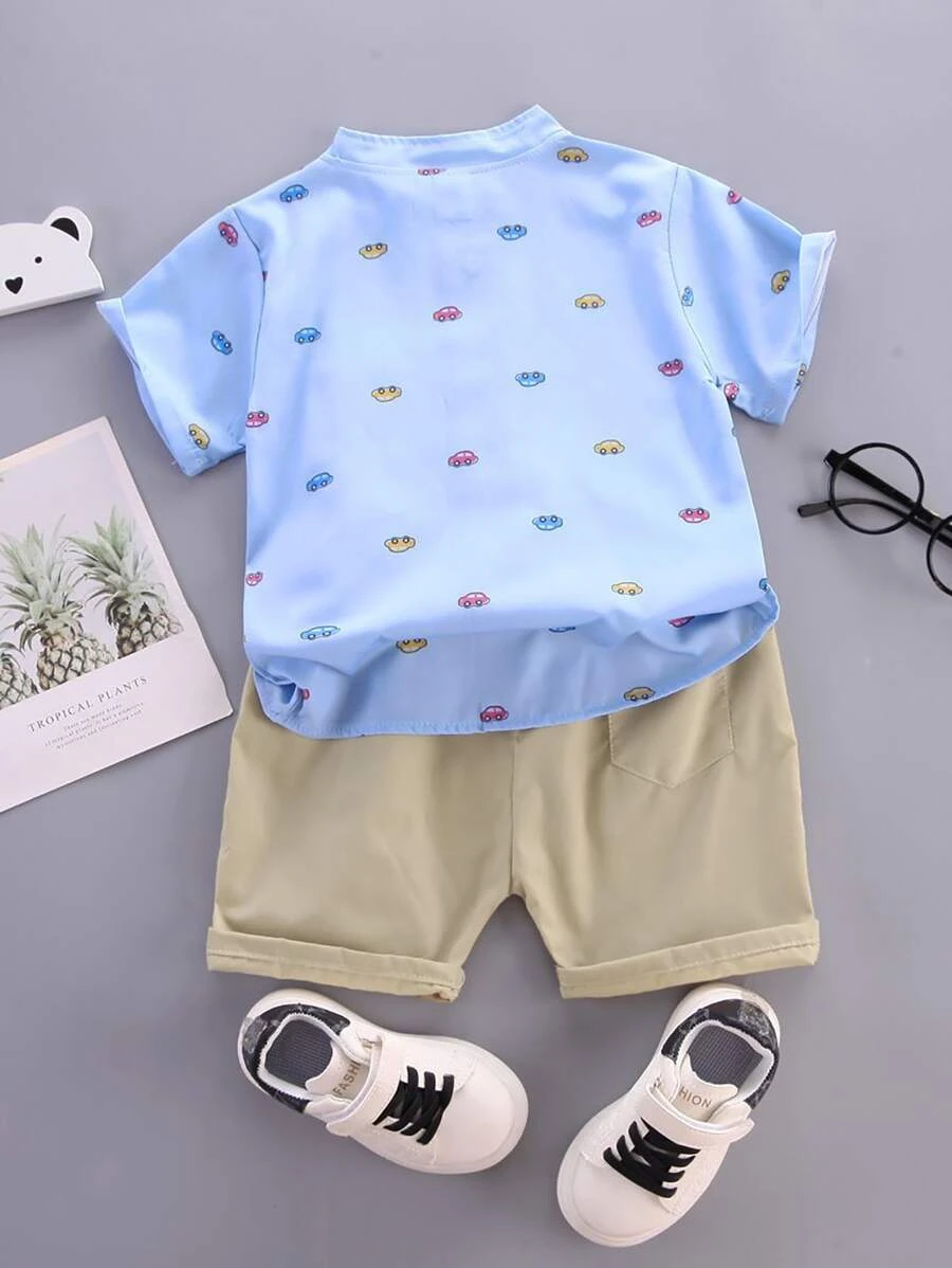 เด็กผู้ชาย เสื้อเชิ้ต การพิมพ์ รถยนต์ เย็บปะ กระเป๋า & กางเกงขาสั้น b-67