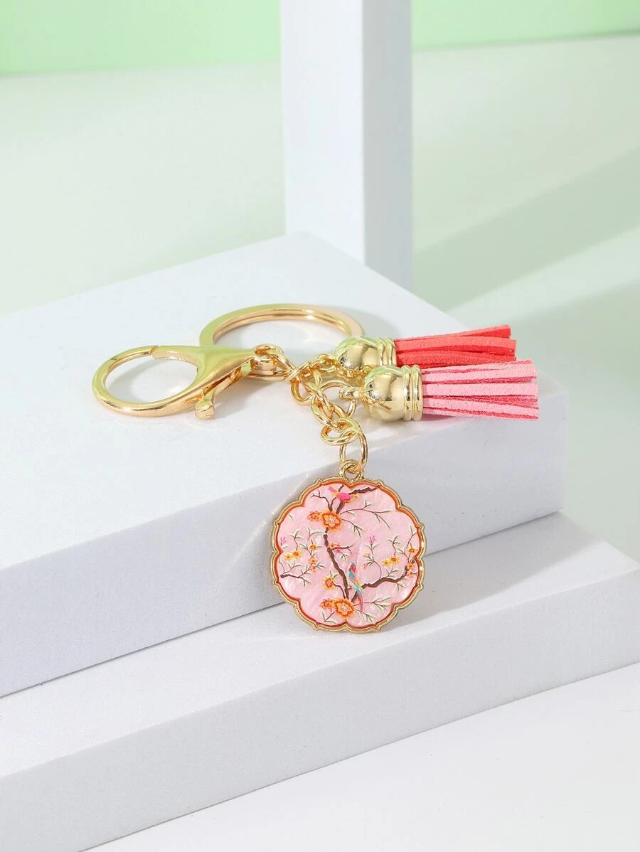 พวงกุญแจ ลาย ดอกไม้ เรขาคณิต & จี้ พู่ k-031