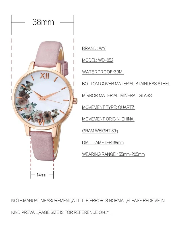 นาฬิกาควอทซ์ ตัวชี้ แบบกลม ลาย ดอกไม้ น-104