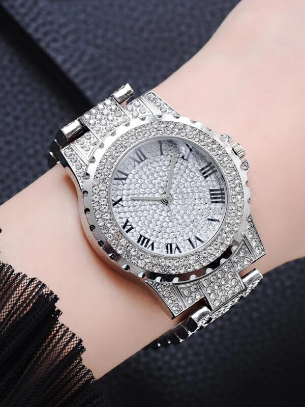 นาฬิกาควอทซ์ ตัวชี้ แบบกลม ตกแต่ง พลอยเทียม น-67