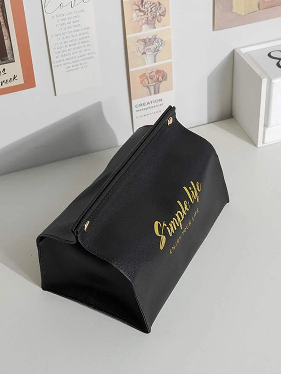 กล่องทิชชู่ กราฟฟิค ตัวอักษร เนื้อเยื่อ จัดเก็บ สีดำ หนัง PU สำหรับ บ้าน ตกแต่ง 1 ชิ้น nn-137