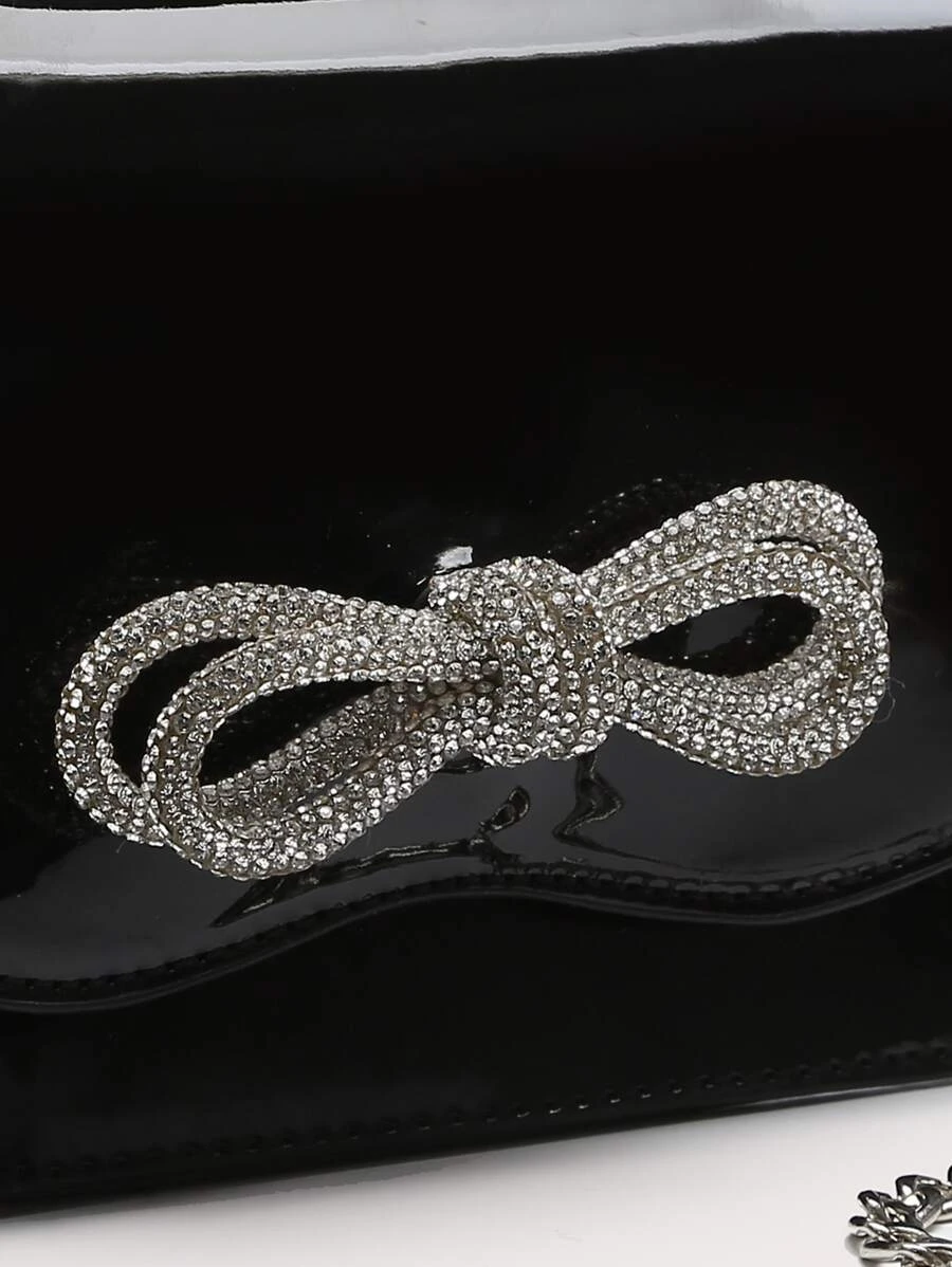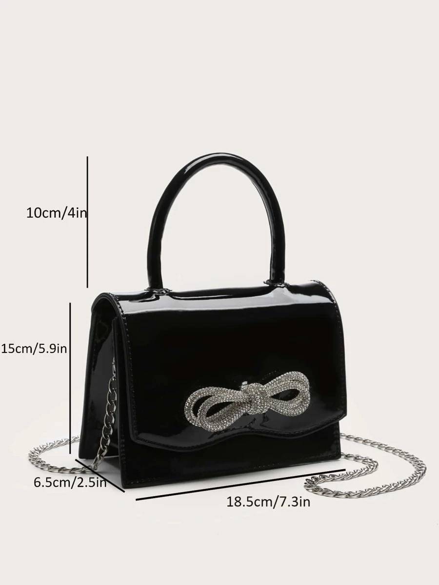 กระเป๋าสี่เหลี่ยม พลอยเทียม ตกแต่ง โบว์ สายคล้องมือด้านบน กระพือปีก โซ่ v-86
