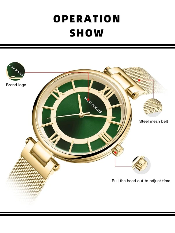 นาฬิกาควอทซ์ ตัวชี้ แบบกลม สายรัดตาข่าย น-0138