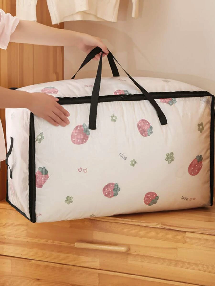 กระเป๋าเก็บผ้านวม ลาย สตรอว์เบอร์รี & ดอกไม้ กันน้ำ 1 ชิ้น gg-77