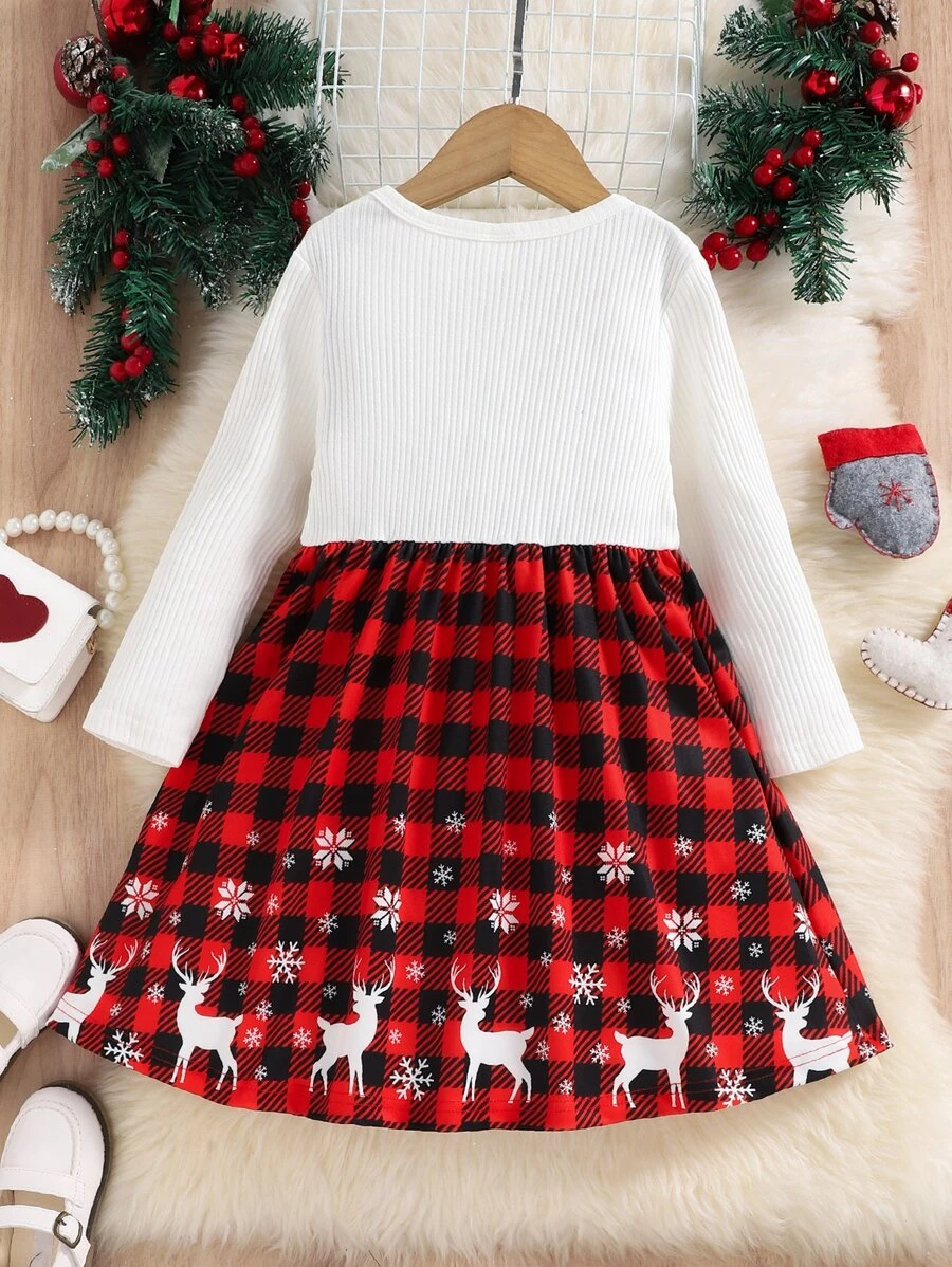 เดรส เด็กเล็กผู้หญิง ลายคริสต์มาส และ ลายกิงแฮม แต่งโบว์หน้า 2 in 1 a-11