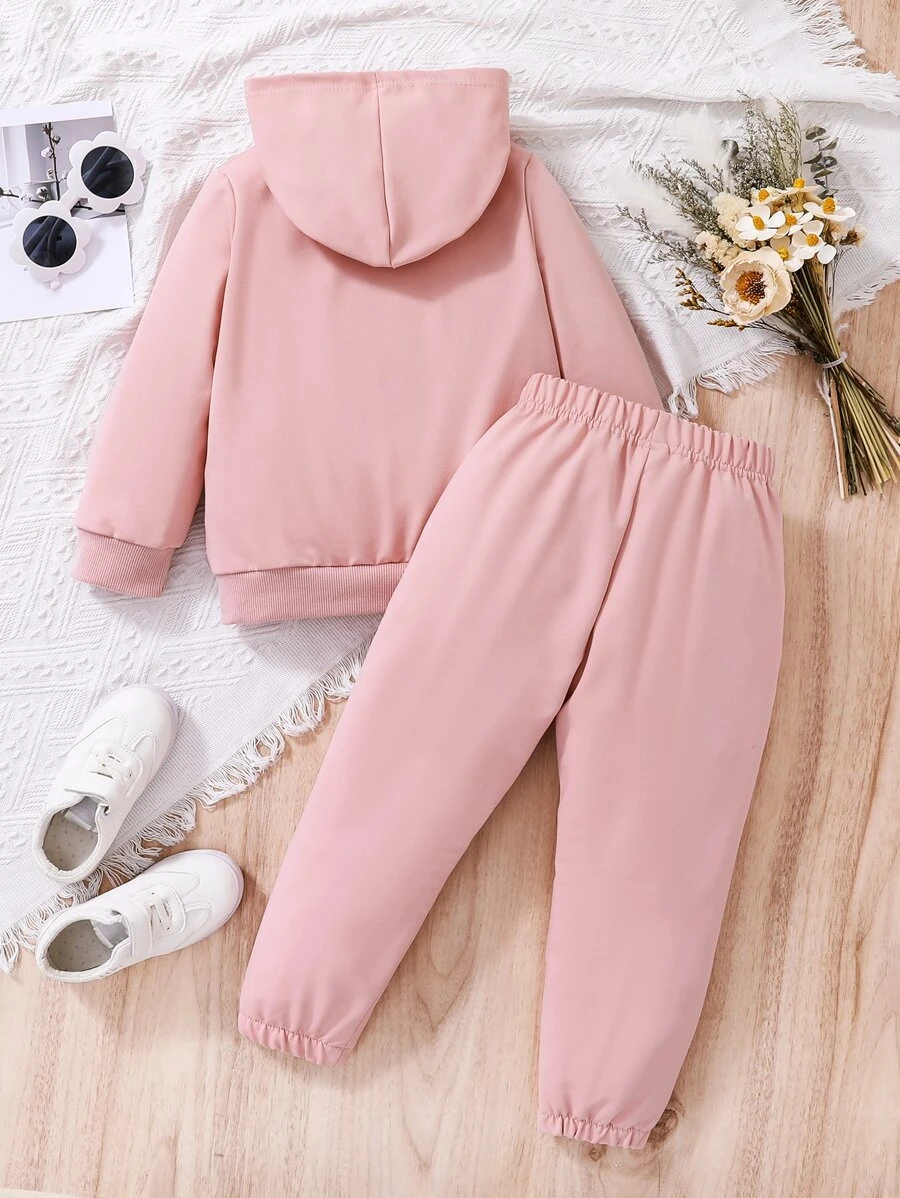 เด็กผู้หญิง เสื้อฮู้ด & กางเกงวอร์ม พิมพ์ สโลแกน a-86