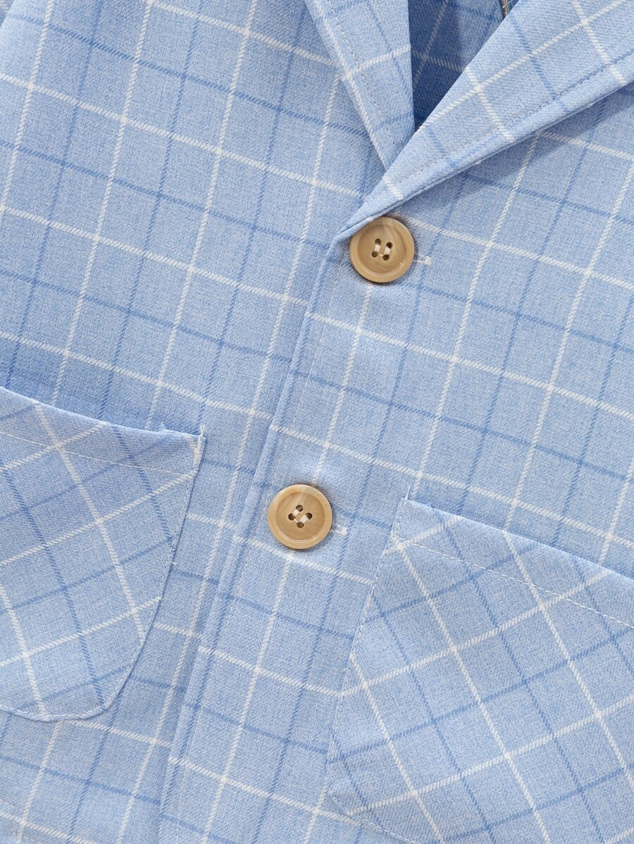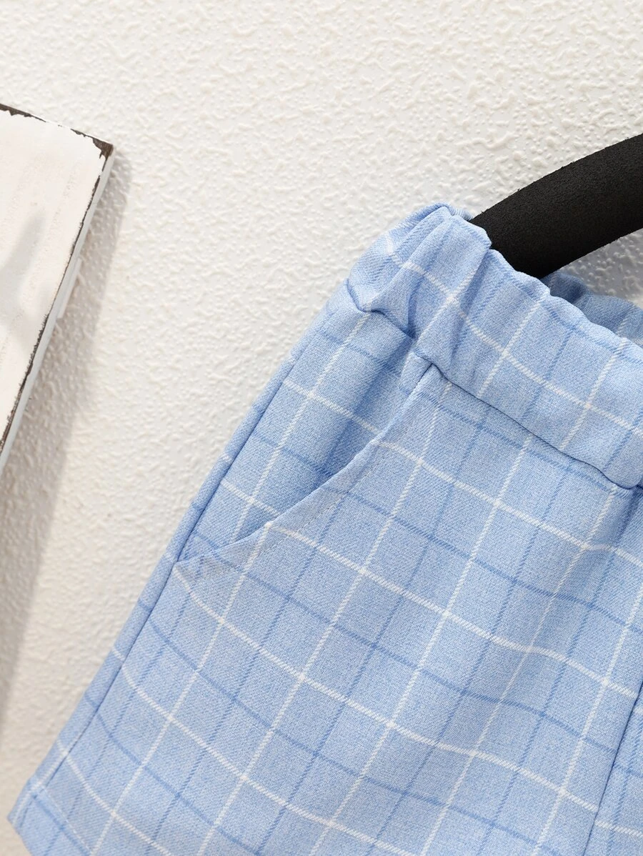 เด็กผู้ชาย ลายสก็อต กระเป๋าคู่ เสื้อเชิ้ต & กางเกงขาสั้น b-16