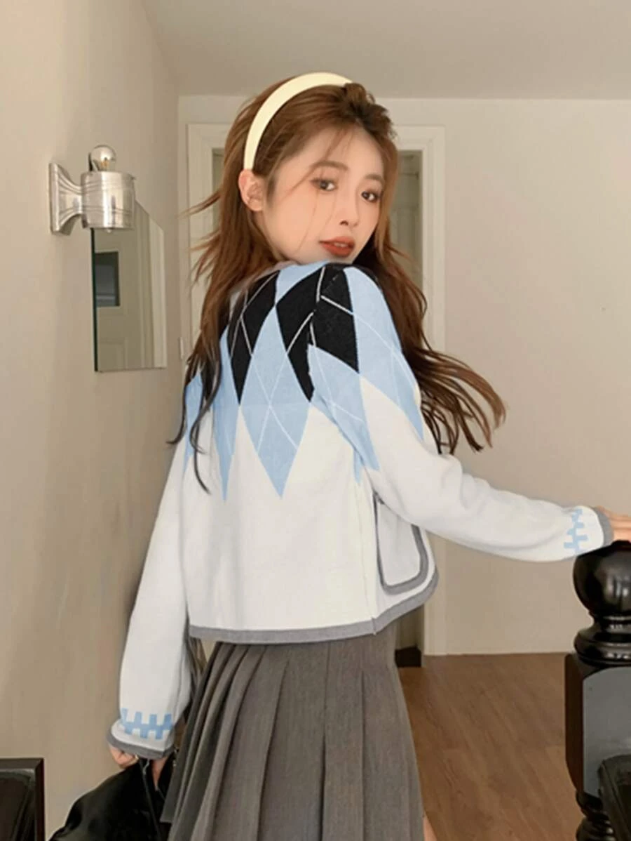 เสื้อคาร์ดิแกน ครอป ขอบสีตัด รูปแบบ อาร์ไกล์ i-88