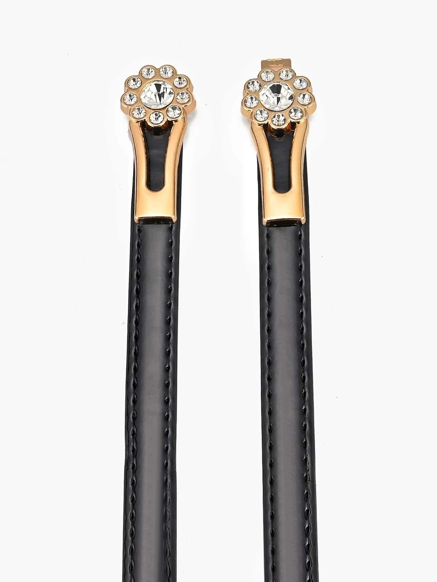 เข็มขัด พลอยเทียม ตกแต่ง ดอกไม้ หัวเข็มขัดสมมาตร l-085