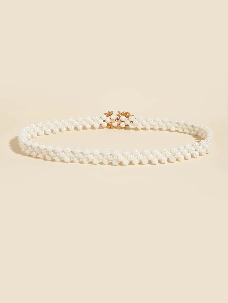 เข็มขัด พลอยเทียม & ตกแต่ง ใบไม้ ไข่มุก l-21
