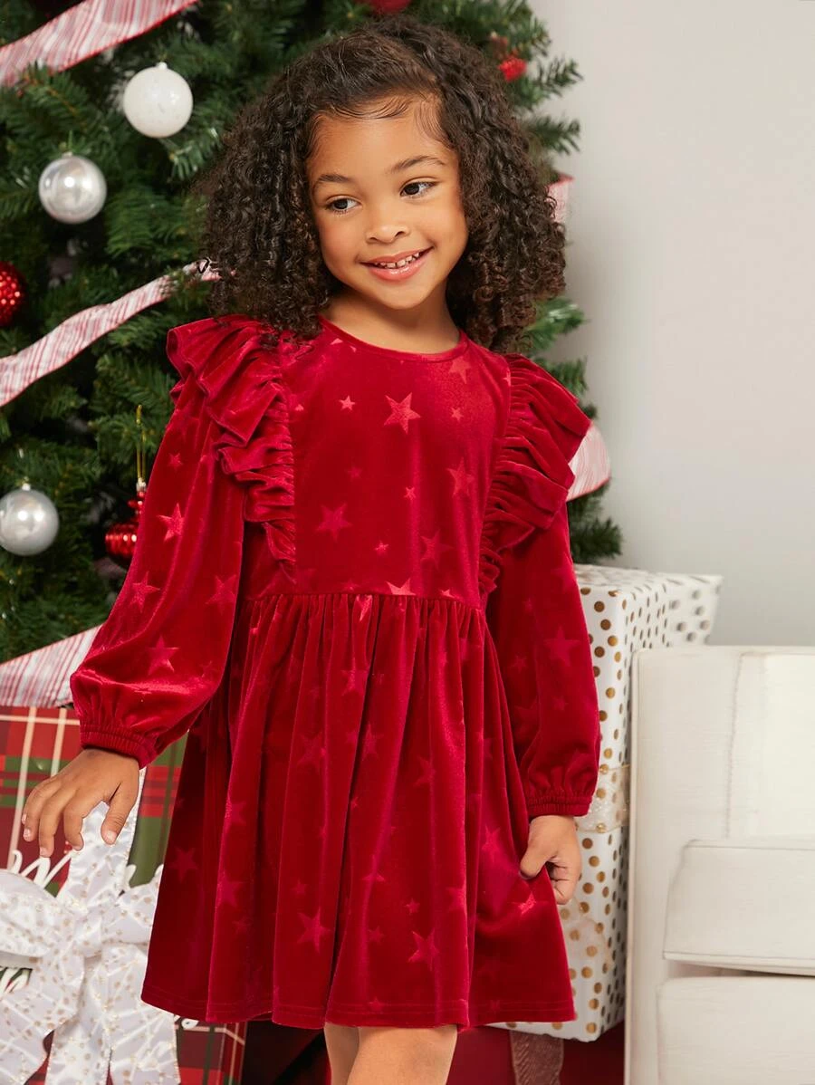 เด็กผู้หญิง เดรส ลายดาว นัวเนีย กำมะหยี่ 1 ชิ้น a-8