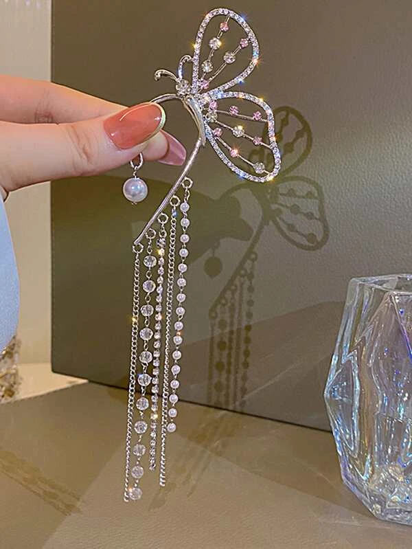 ต่างหูแบบคล้อง พลอยเทียม ผีเสื้อ & มีดีเทลตกแต่งด้วยพู่ห้อย 1 ชิ้น e-7