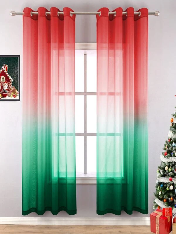 ผ้าม่าน ผ้าโปร่ง คริสต์มาส ออมเบร ผ170