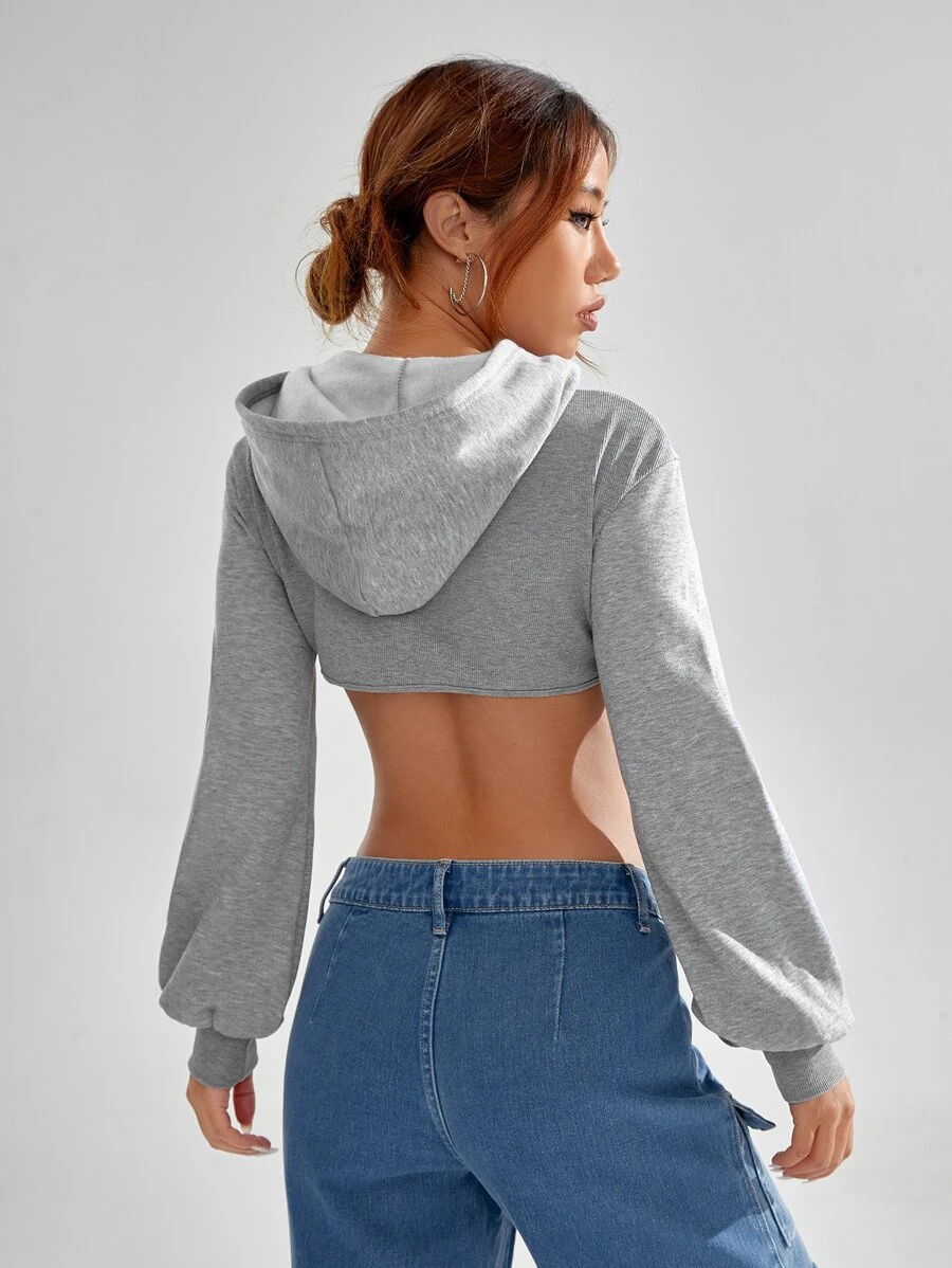 เสื้อฮู้ด ทรงซุปเปอร์ครอป กราฟฟิค ตัวอักษร cc-50