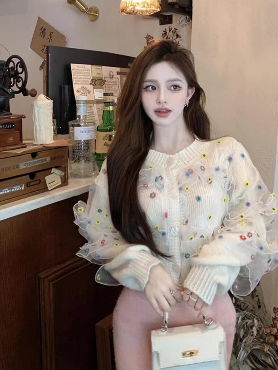 คาร์ดิแกน ปัก ดอกไม้ กระดุมด้านหน้า i-30