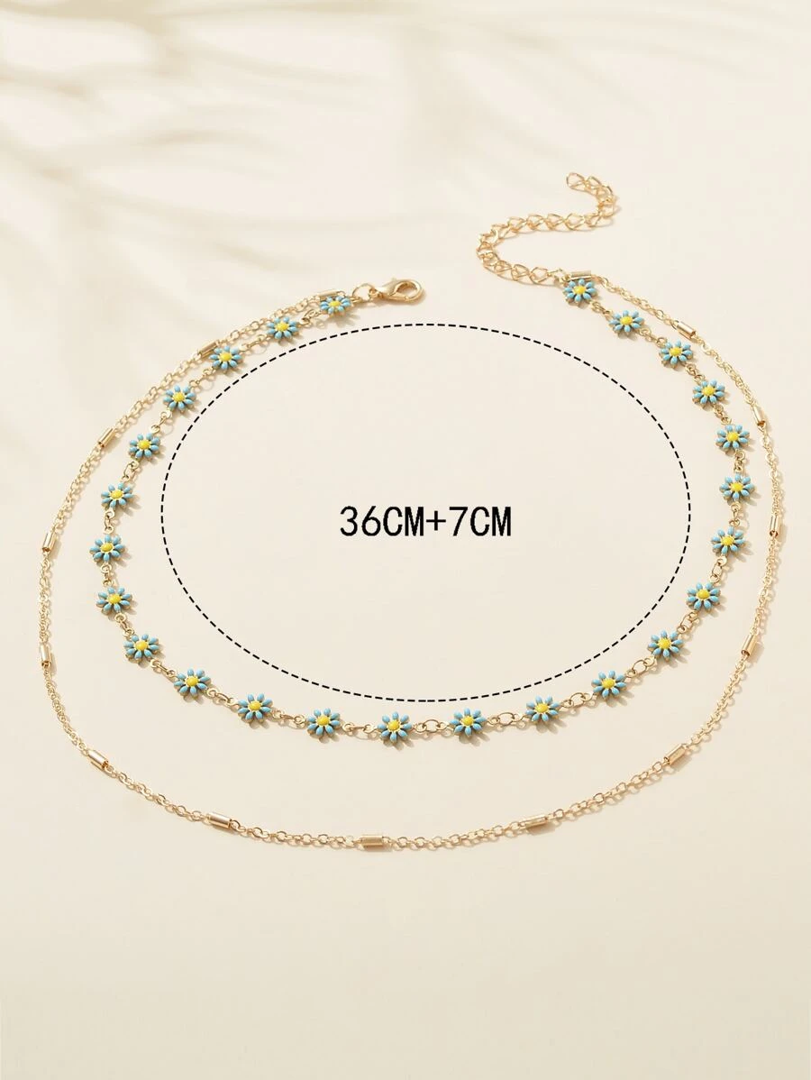 สร้อยคอ เลเยอร์ ตกแต่ง ดอกไม้ kk-24