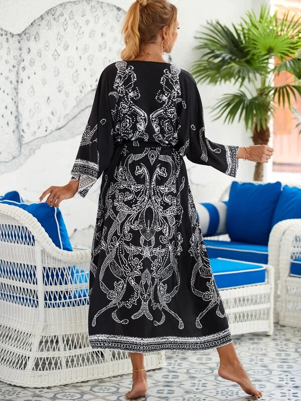 กิโมโน พิมพ์ลาย ดอกไม้ แต่งเข็มขัด mm-212