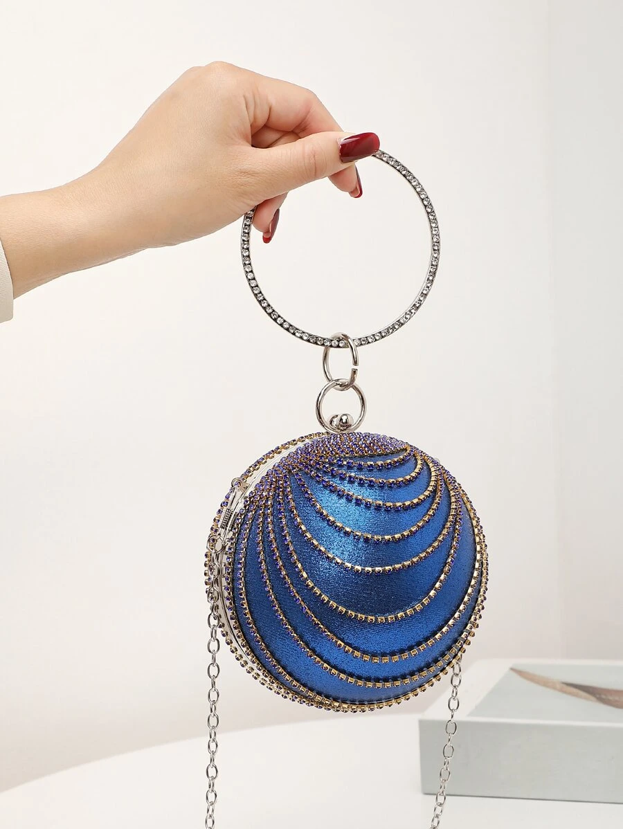 กระเป๋า ทรงกลม มินิ ติดเพชร ห่วงจับทรงกลม v-100
