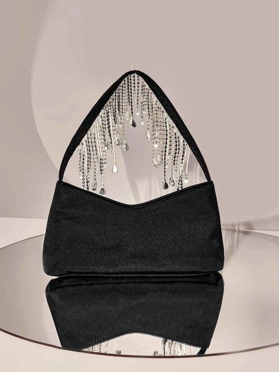 กระเป๋า บาแกตต์ ตกแต่ง พลอยเทียม ผ้าซาติน v-95