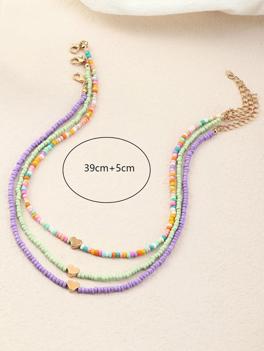 สร้อยคอ ลูกปัด ตกแต่ง หัวใจ 3 ชิ้น kk-48
