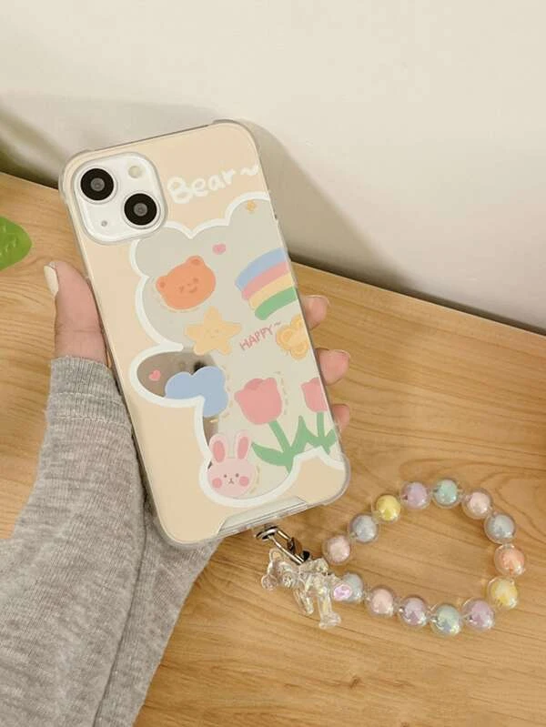 เคสโทรศัพท์กระจก ภาพ การ์ตูน พร้อมสายคล้อง c-64