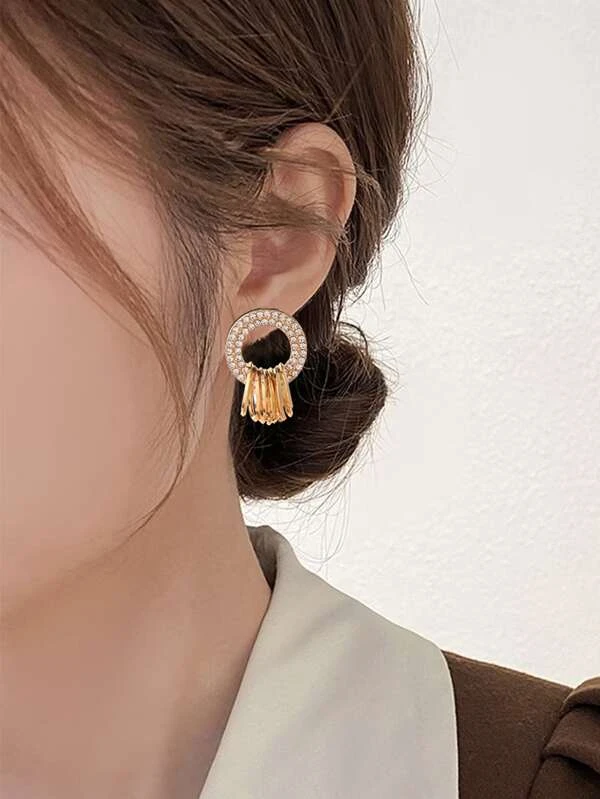 ต่างหู พลอยเทียม ตกแต่ง วงกลม e-63