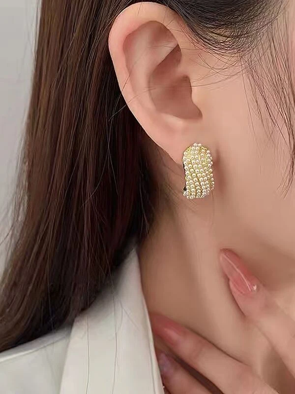 ต่างหู สตั๊ด ประดับ มุกเทียม e-69