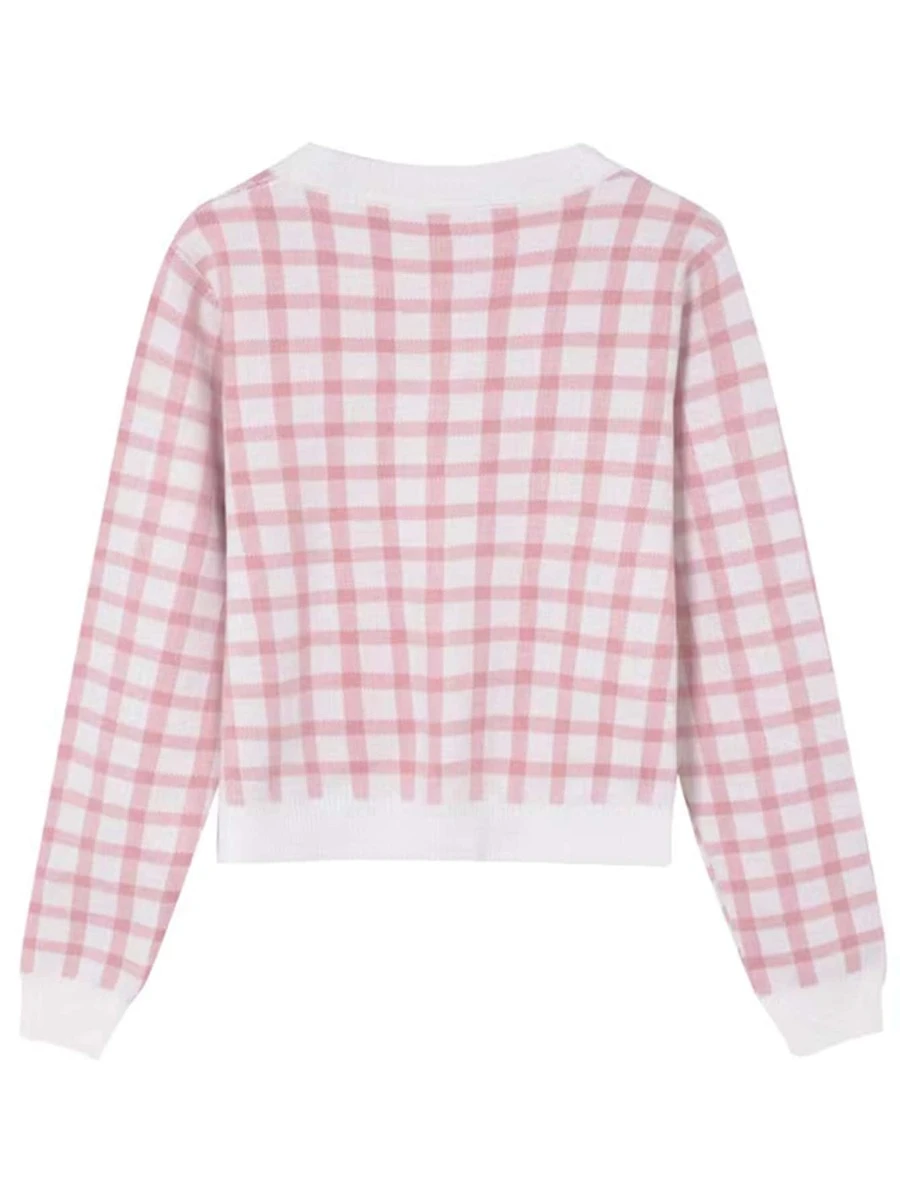 เสื้อคาร์ดิแกน ครอป ลายสก็อต กระดุมแถวหน้า i-68