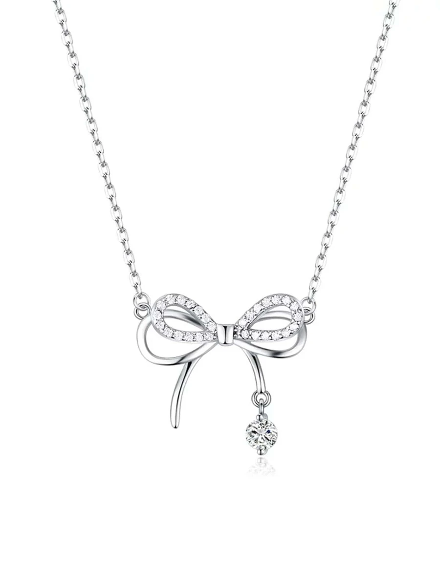 สร้อยคอ ติดเพชร โบว์ งานเงิน kk-110