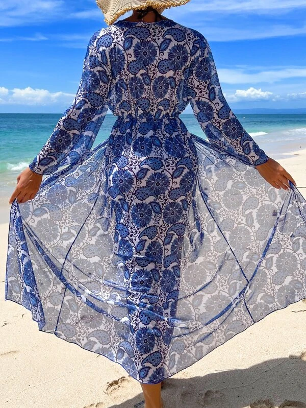 กิโมโน พิมพ์ลายทั้งตัว เชือกรูดที่เอว mm-120