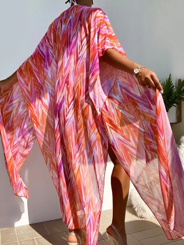 กิโมโน ลายซิกแซก ผ้าโปร่ง mm-199