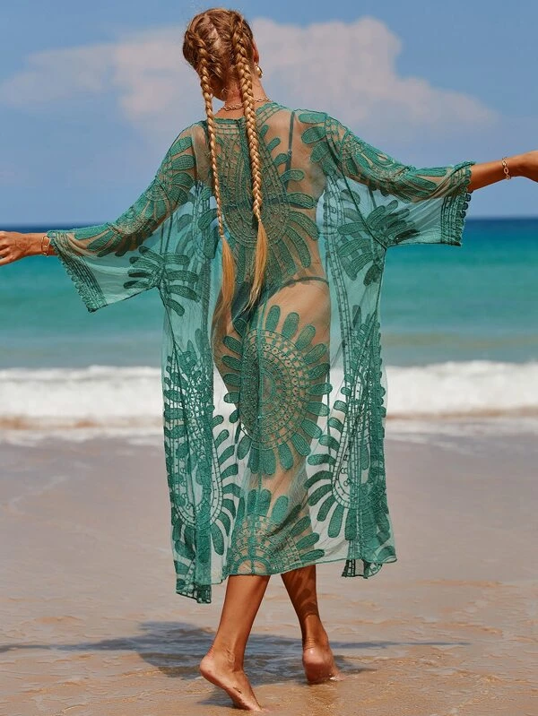กิโมโน ผ้าโปร่งปักลาย มัดปมหน้า mm-62