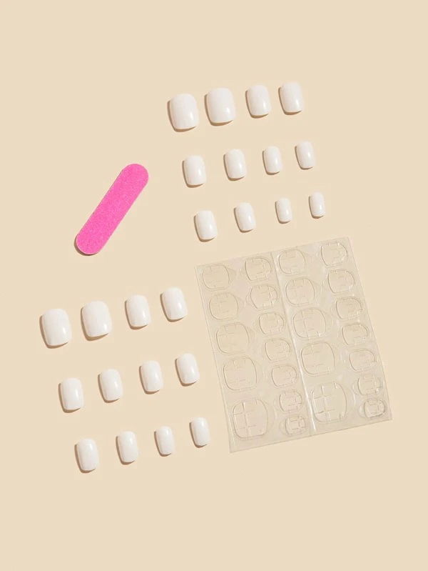 เล็บปลอม ทรงเหลี่ยม สีพื้น 24 ชิ้น และ ตะไบเล็บ และ เทป 1 แผ่น c-21