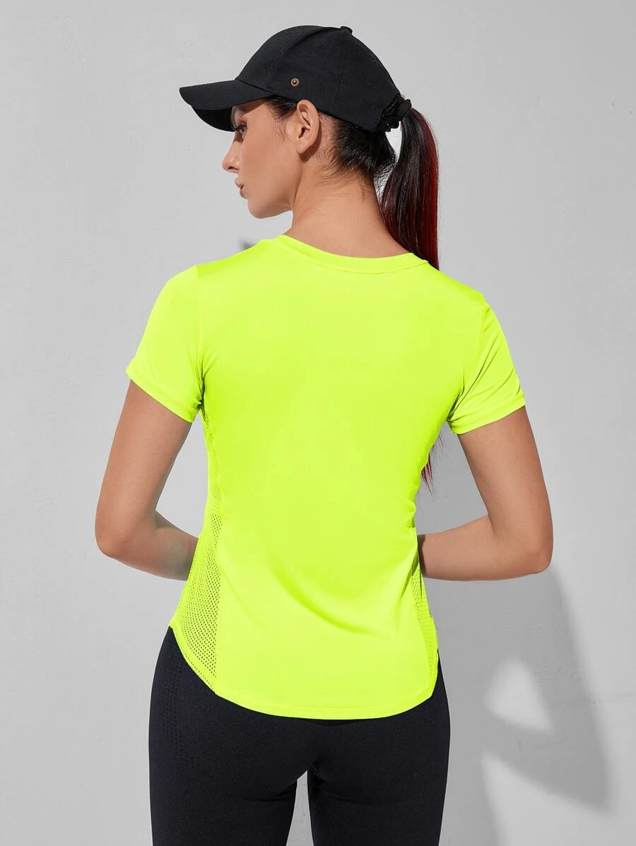 เสื้อยืดกีฬา สีเขียวนีออน ประกบตาข่าย aa-8