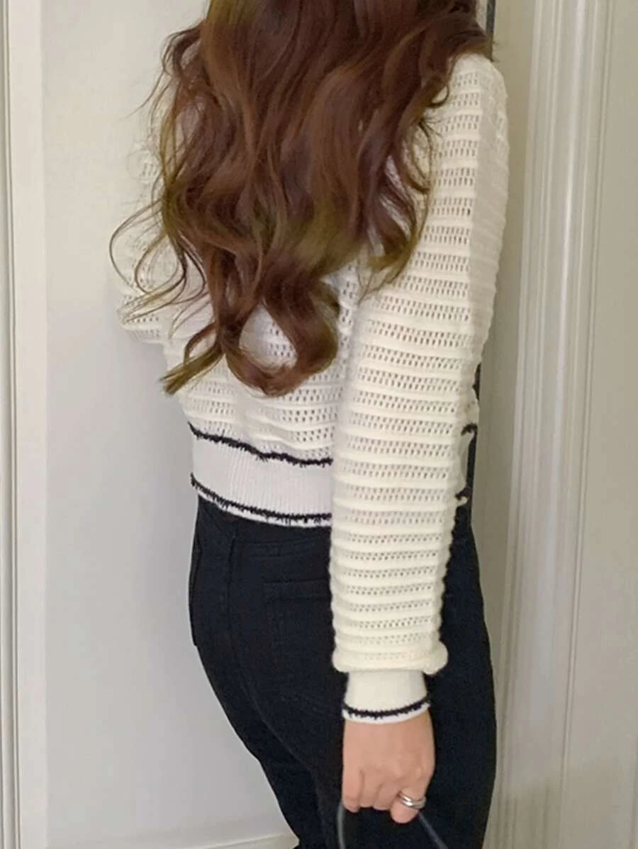 คาร์ดิแกน กระเป๋าด้านหน้า ถักลายพอยท์เทล i-70
