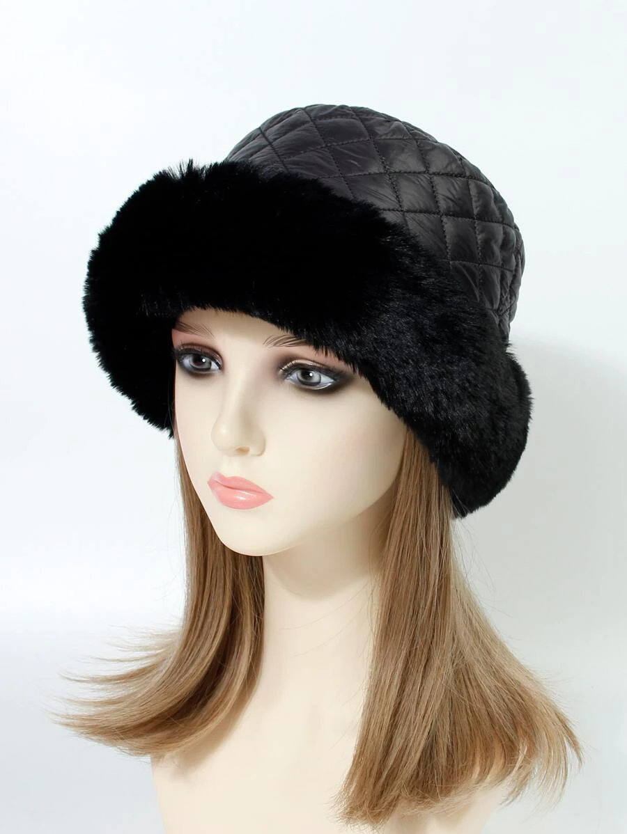 หมวกบักเก็ต ผ้าควิลท์ ขนปุย j-1