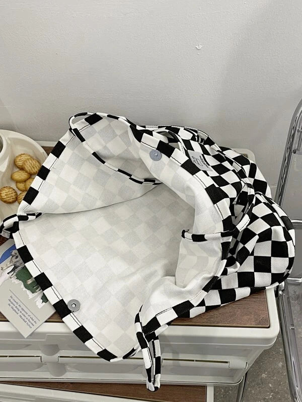 กระเป๋าช้อปปิ้งผ้าใบ ลายบล็อกสี ลายสก็อต n-71