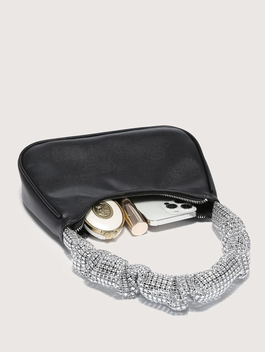กระเป๋า บาแกตต์ ตกแต่ง พลอยเทียมv-57