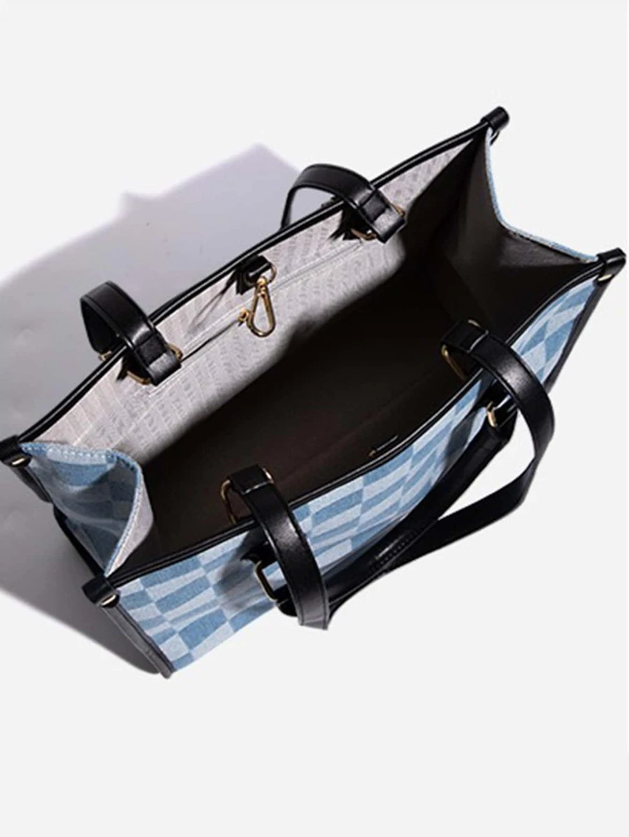 กระเป๋าถือ ลายตาราง เย็บสีตัด v-7