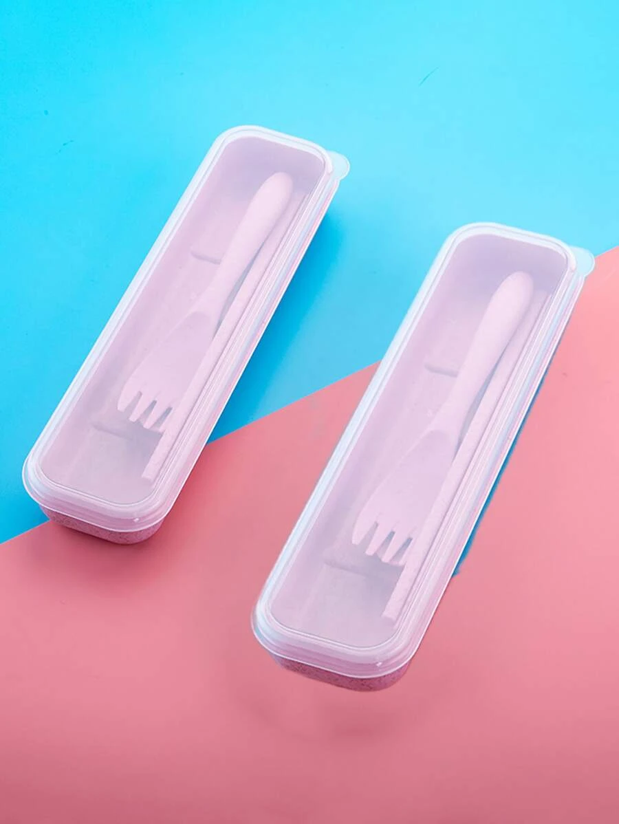 เซต อุปกรณ์ทานอาหาร 3 ชิ้น พลาสติก และ กล่อง 1 ชิ้น hh-46