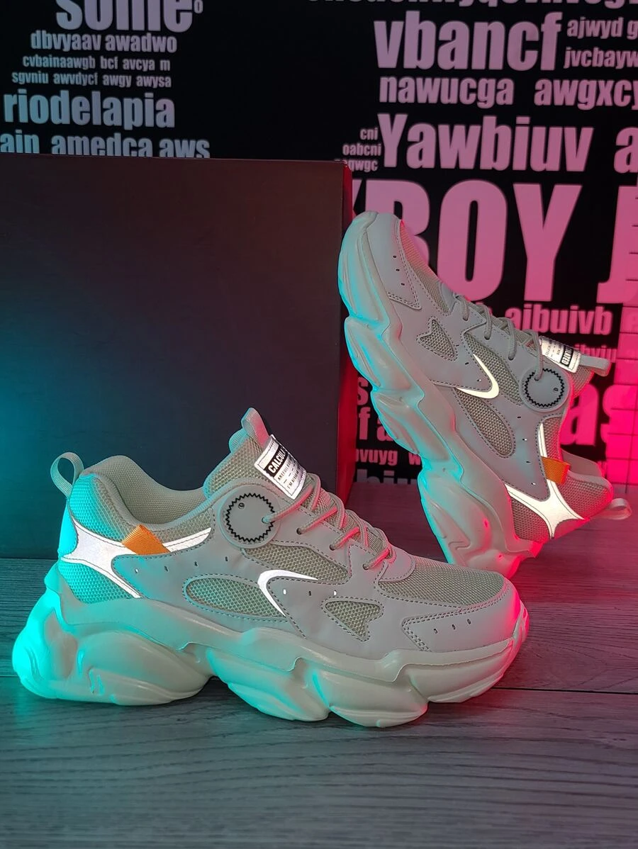 ผู้ชาย รองเท้าผ้าใบทรง Chunky แพทช์ ตัวอักษร สะท้อนแสง รายละเอียด สายรัดหน้า m-54 z.39-46