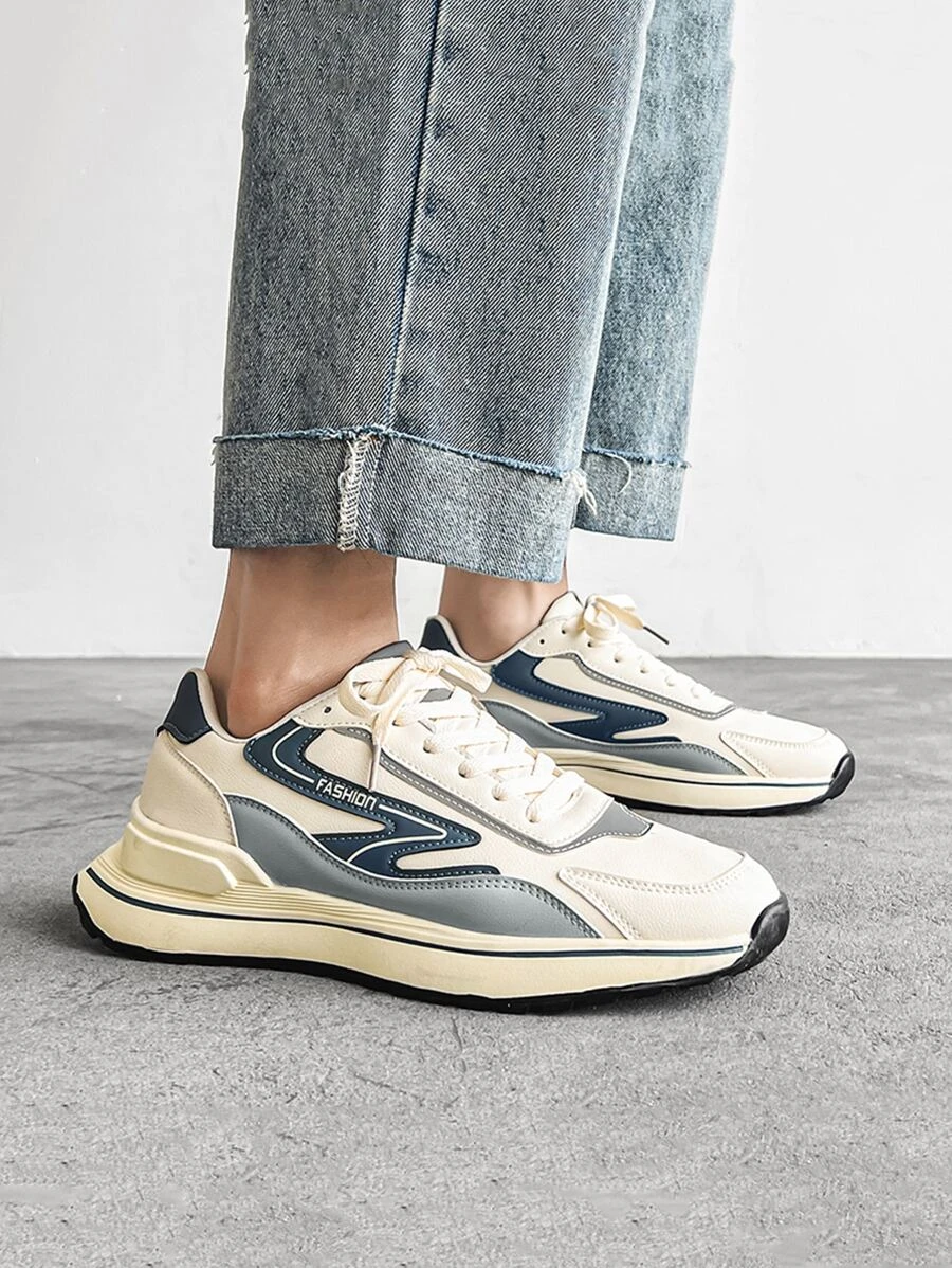 ผู้ชาย รองเท้าผ้าใบทรง Chunky บล็อคสี สายรัดหน้า m-49 z.39-45