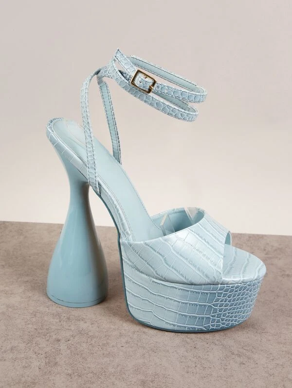 รองเท้าส้นสูง จระเข้้ PU ทรง peep toe รองเท้าที่มีสายพันข้อเท้า เสริมส้น l-25