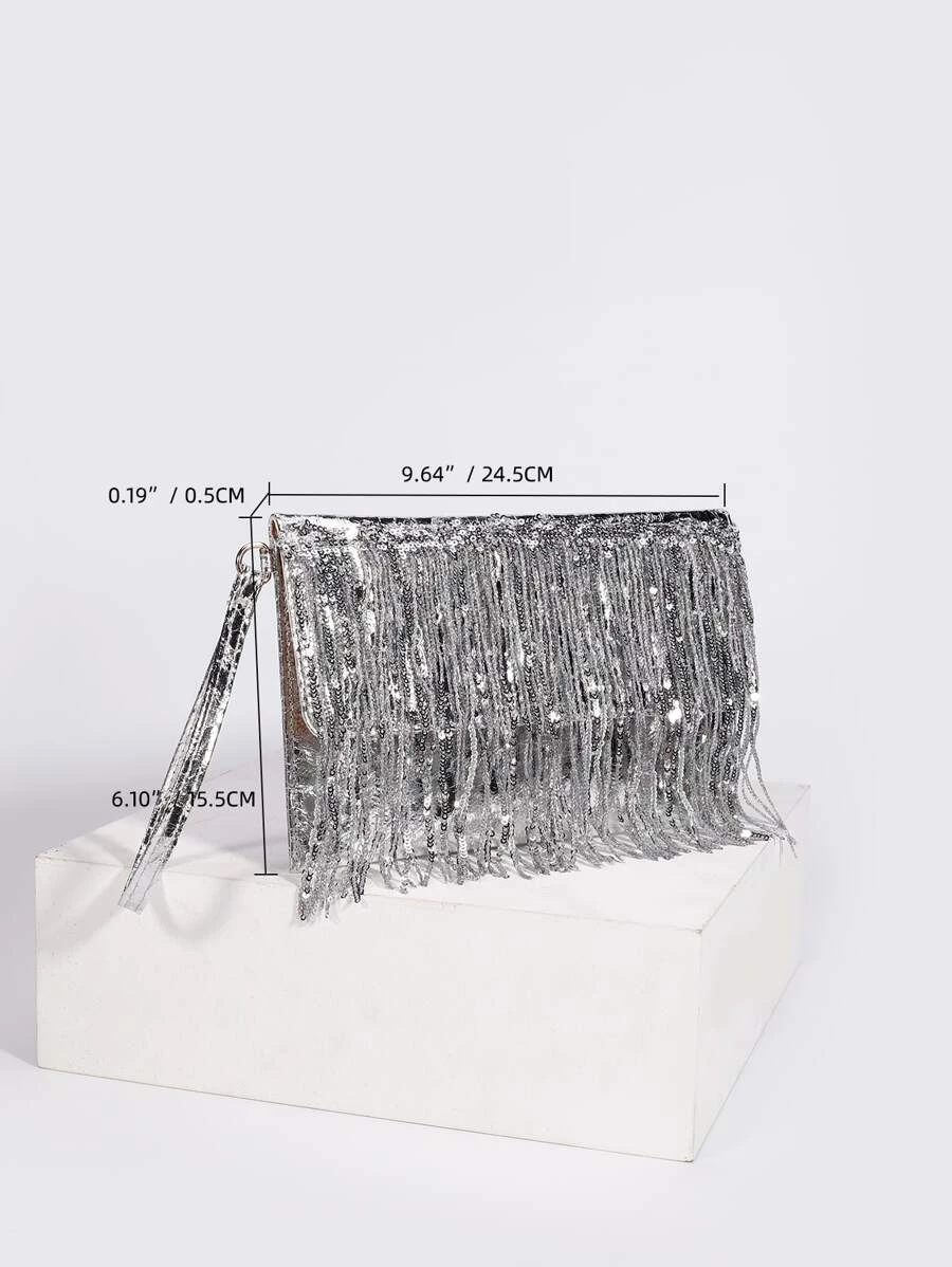กระเป๋าทรงเหลี่ยม ปักเลื่อม แต่งพู่v-37