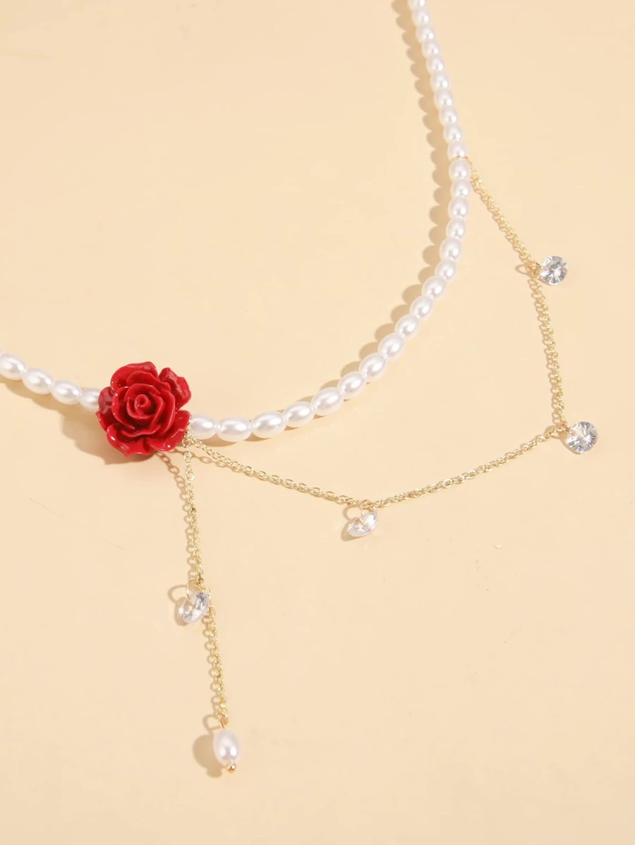 สร้อยคอ รูปตัว Y ไข่มุก & เครื่องประดับ ดอกไม้ kk-158